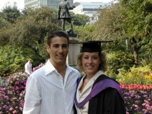 Alexandra (LLB 2003) a solicitor met her Husband Simon (MBBCh 2005) a GP in October 2000 when they both lived in Talybont South.