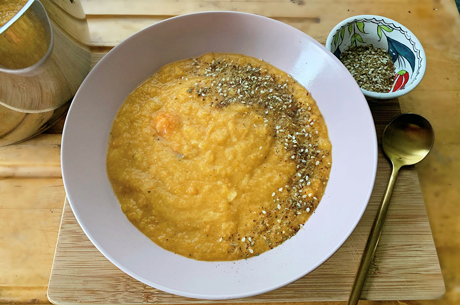 “I make soups often through the colder months. Their ingredients are determined by whatever vegetables I have to hand and (more often than not) some thrifty lentils or beans, which will muscle their way into the pan!”