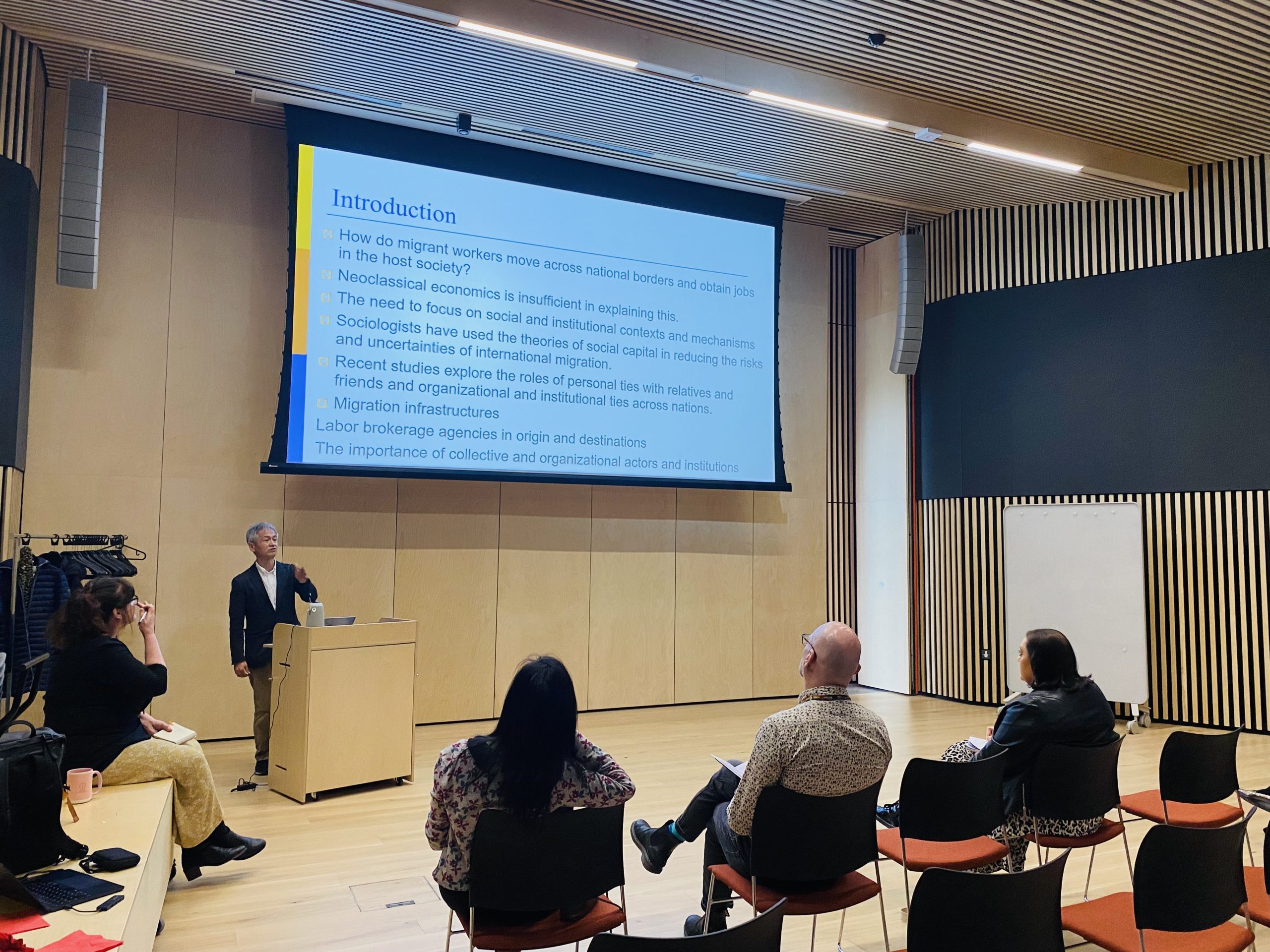 Professor Sin Yi Cheung, MEAD’s Director, had organised an academic visit from Professor Hirohisa Takenoshita, Professor of Sociology, Keio University who presented on his research on ‘Transnational Migration and Labor Market Incorporation in Japan’. Then followed four 5-minute lightning talks including: